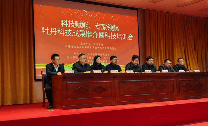 12月1日上午,“科技赋能 专家领航”牡丹科技成果推介暨科技培训会在图书馆报告厅举行,学校党委委员、副校长田智祥出席会议并讲话。菏泽市牡丹发展服务中心主副主任刘继国,牡丹区政府党组成员、办公室主任、牡丹省级农高区主任郭现臣,学校科研处处长卜万奎,合作发展处处长尹晓允,2138cn太阳集团党委书记刘燕、院长张明、部分师生代表,菏泽市牡丹企业和种植户代表共计200余人参加会议。